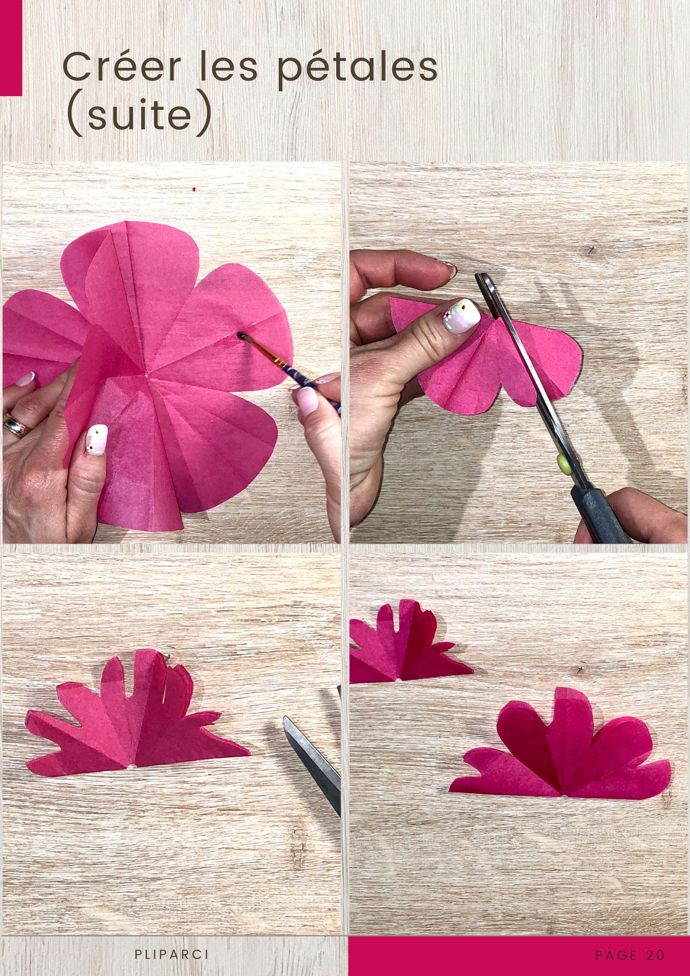 - 4 morceaux de papier de soie fuchsia (13 x 13 cm)