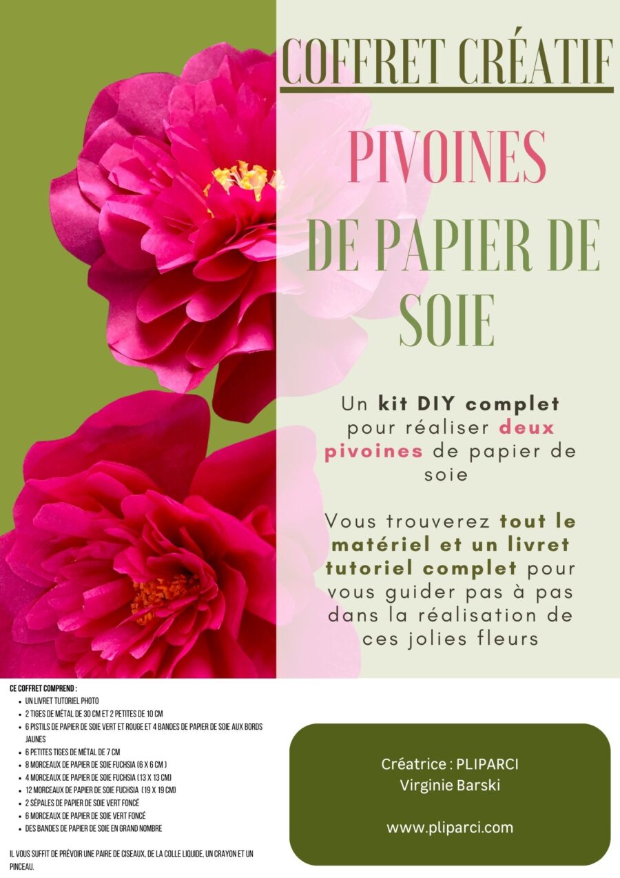 Un kit DIY complet pour réaliser vous même deux pivoines de papier de soie